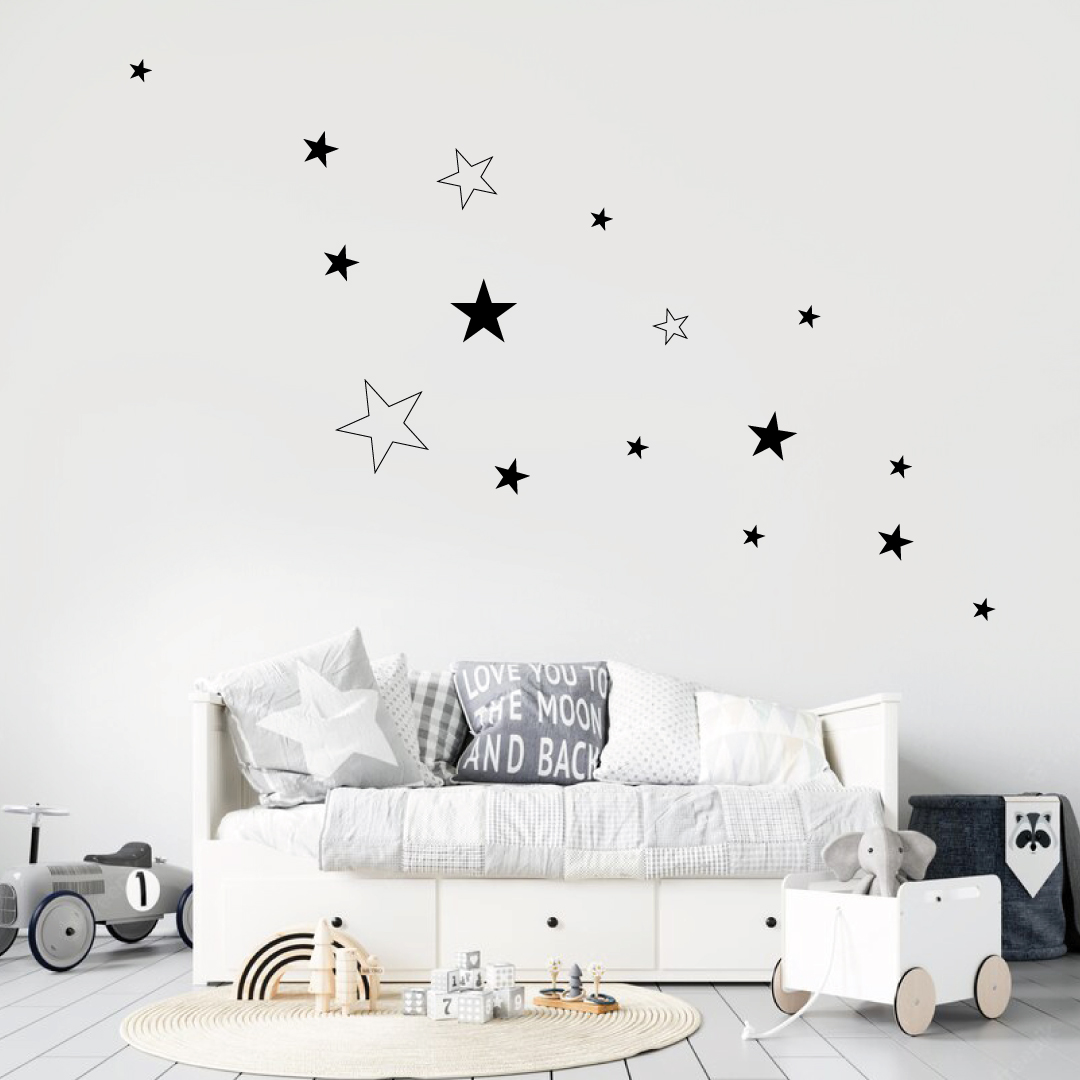 Vaikų kambario sienų lipdukas su žvaigždutėmis.