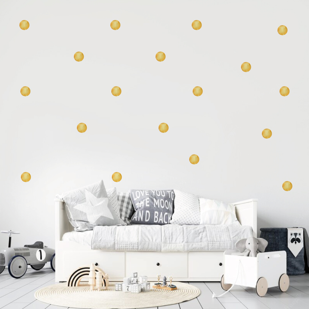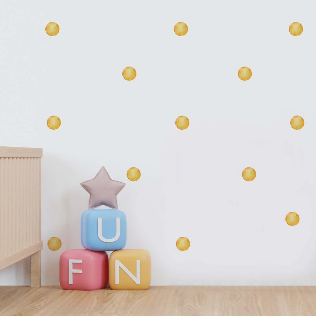 Vaikų kambario sienų lipdukas su geltonos spalvos burbuliukais.