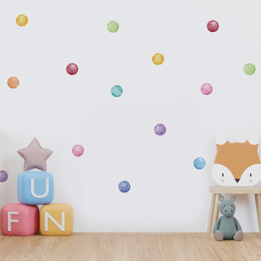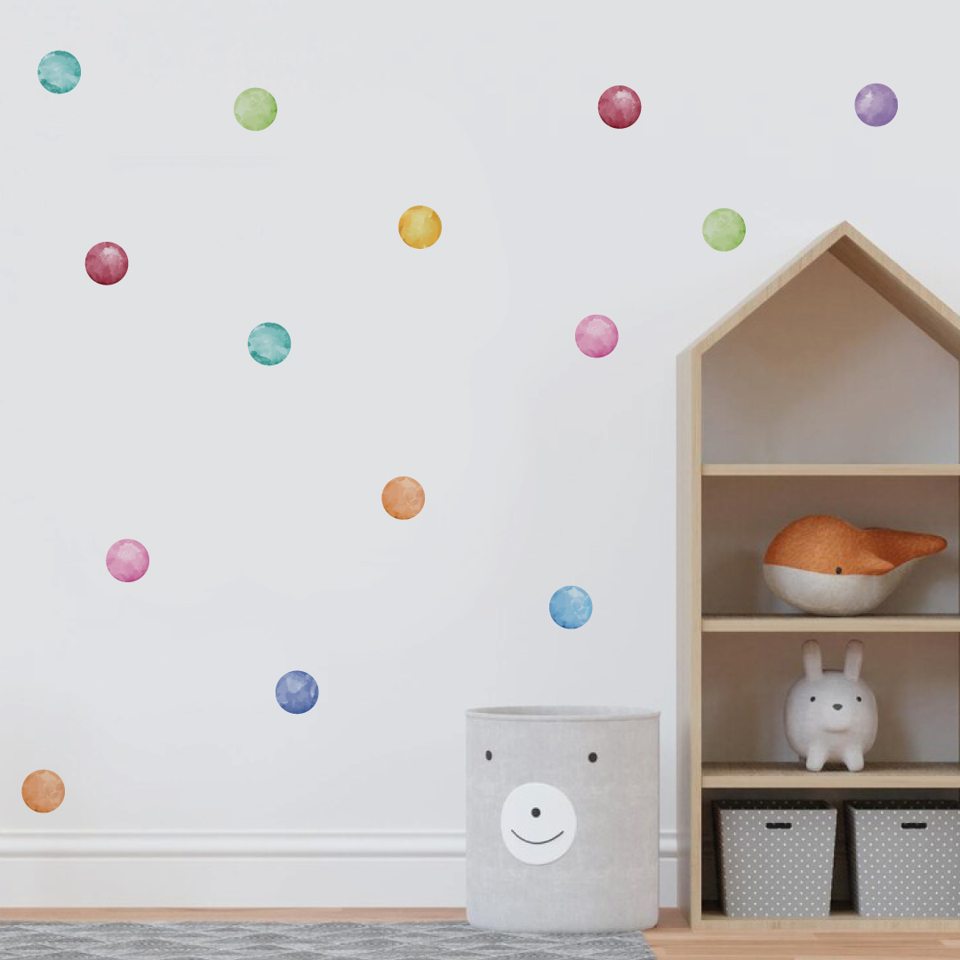 Vaikų kambario sienų lipdukas su spalvotais burbuliukais.